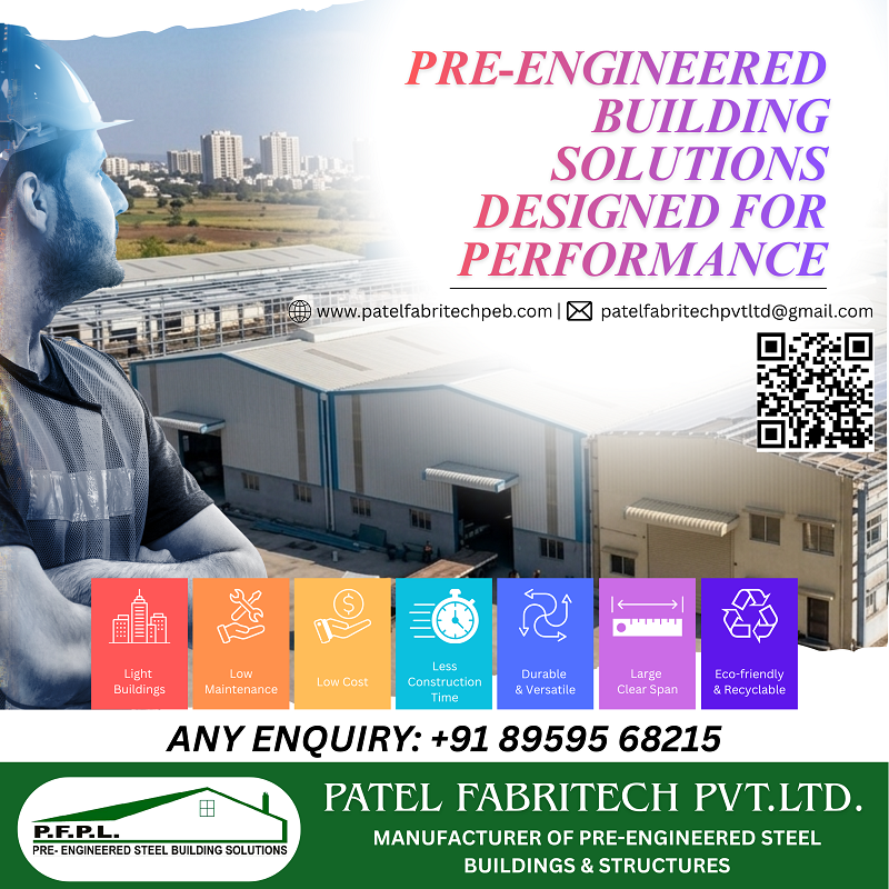 Whether the requirement is for factory buildings, industrial sheds, or comprehensive steel building systems, Patel Fabritech Pvt. Ltd. guarantees high performance, reliability, and quality. Engage with the leading PEB industrial steel building manufacturer in Indore to develop resilient, efficient, and future-ready industrial infrastructure.